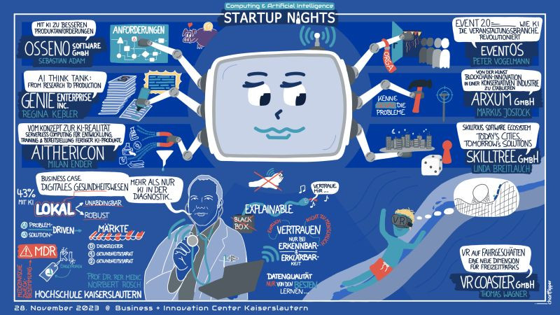 Ziel dieses Networking-Events war es, mit und für Startups, etablierten Unternehmen, ForscherInnen und InvestorInnen unsere gemeinsame Innovationskraft in Rheinland-Pfalz rund um Informationstechnologie und künstliche Intelligenz nach außen hin sichtbar zu machen und Kooperationen zu stärken. Neben der Keynote-Speech waren Startup Pitches mit innovativen und effektiven Lösungen und eine Podiumsdiskussion die Eckpfeiler des Programms.